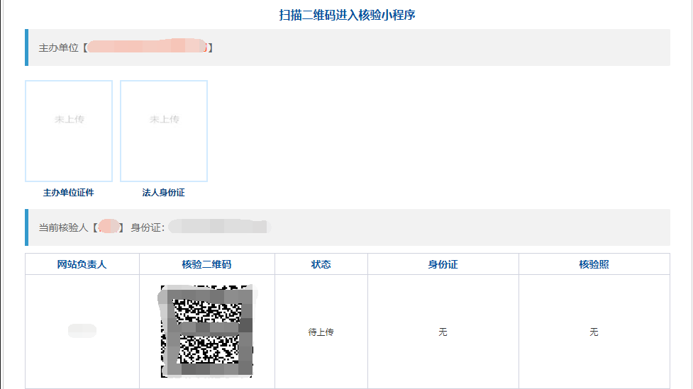 b. 扫描二维码进行企业营业执照核验\法人核验\网站负责人核验