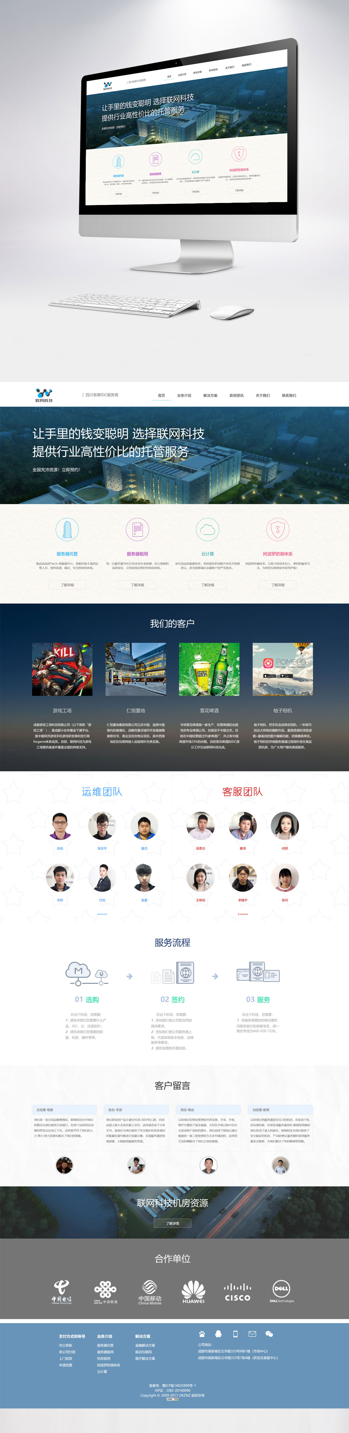 成都指南针联网科技股份自2012年成立以来,专门致力于服务器托管、服务器租用、云服务器、网络安全等互联网基础服务业务的开展。公司目前有在职人员80余人,其中市场营销部、售后服务部和机房运维部员工总人数超过40人,能确保在IDC这个重服务的领域内给用户提供良好的服务感知。此外,公司的研发部门也在西部信息中心机房和北京的BGP机房部署架设了自己的云服务器平台,目前已正常投产,获得了用户的大量好评。