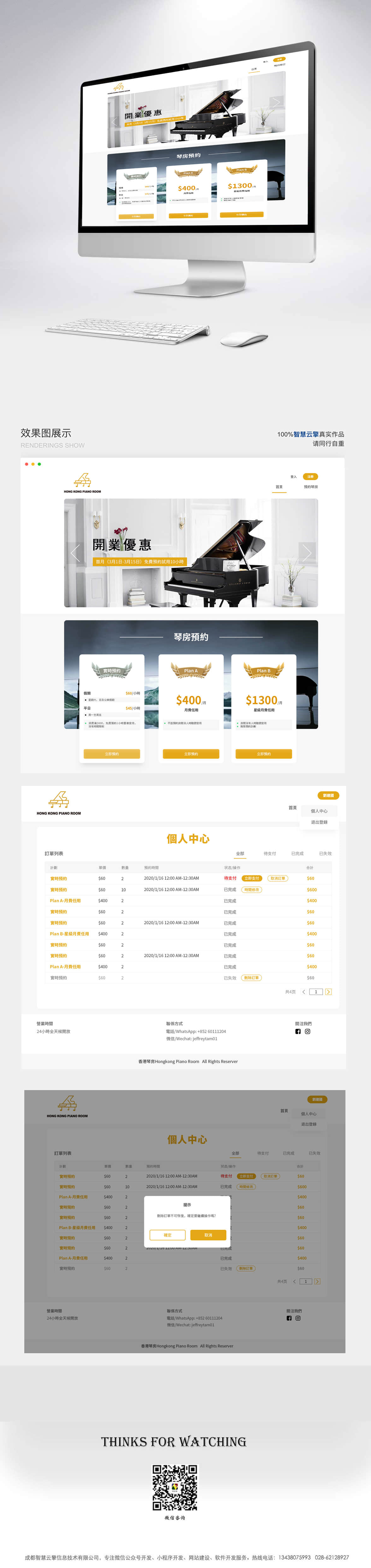 香港琴室预约系统,可以满足香港地区会员自助线上预约琴房,线上支付后,系统自动将琴房密钥通过短信发送给顾客。系统后台财务统计数据明细,方便管理者了解运营情况。