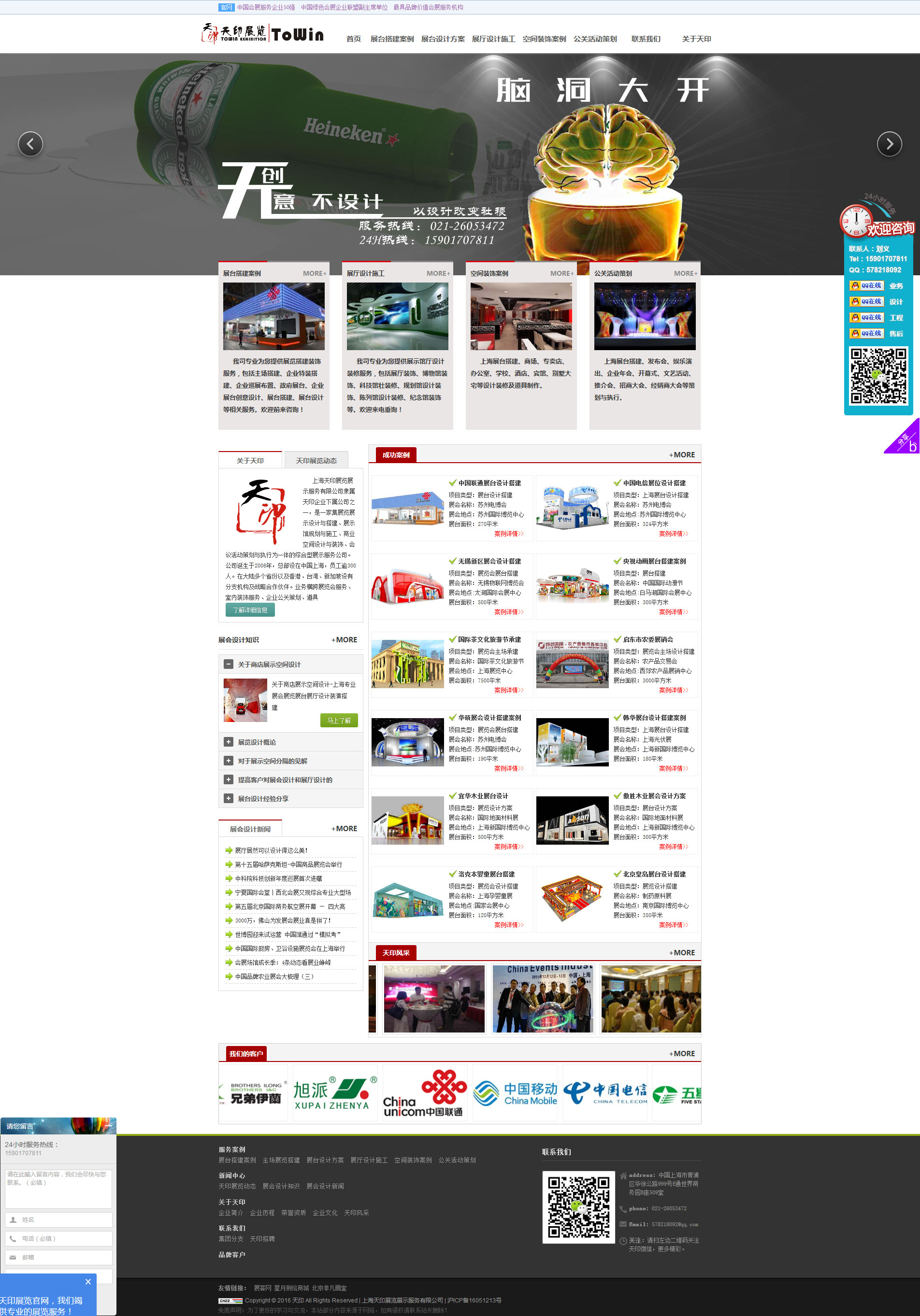 天印公司前身上海天印展览道具制作工厂(纯工厂)诞生于2006年,于2010年8月成立上海天印展览展示服务有限公司并组建设计和业务团队,2011-2012年先后投资成立北京、广州制作工厂,2014年杭州丰拓展示设计有限公司加盟天印企业,2015年与上海九瓶公关策划有限公司(新加坡九瓶旗下机构)建立战略合作并组建天印企业公关策划部,2015年设立国展(国家会展中心)办事中心并同年投资成立上海佐迈装饰工程有限公司;并同时在大陆多个省份以及香港、台湾、新加坡、欧美等均有建立战略合作伙伴并设立相关联络办事处。