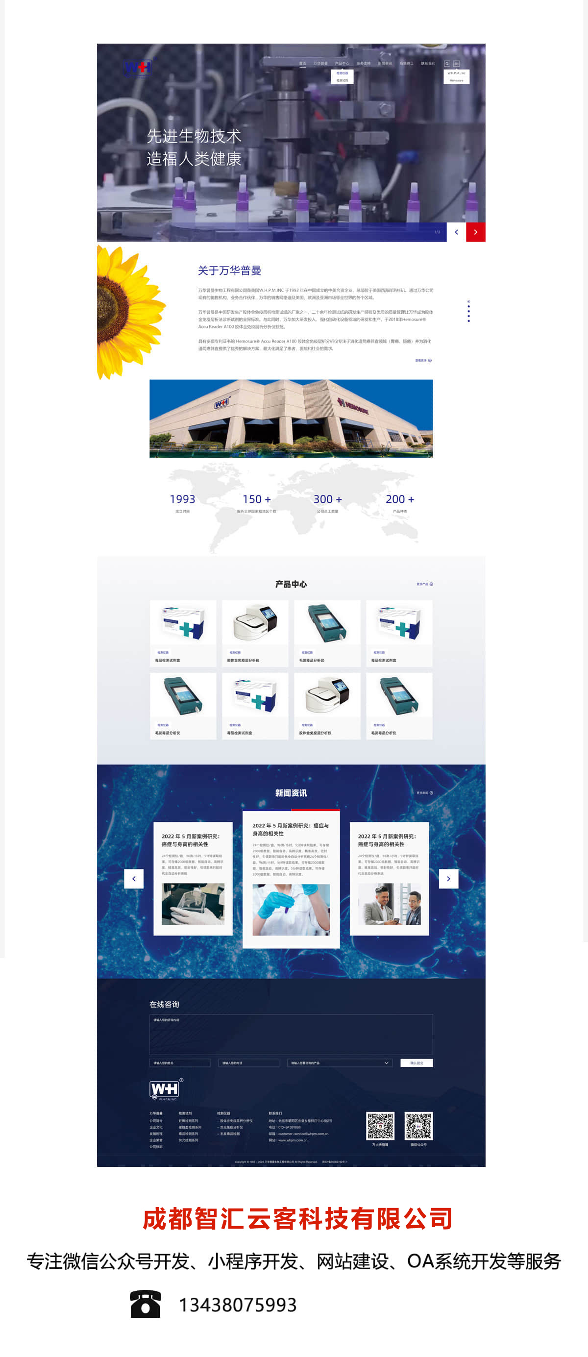 万华普曼网站为响应式网站, PC端和移动端可以自由切换。网站页面简洁大方,采用绿色为主色,重在凸显自然环境科学院的特点。网站整体分为首页、万华普曼、产品中心、服务支持、新闻资讯、招贤纳士、查询报告,联系我们,共计8个栏目。网站建设历时50天左右,智慧云擎的设计者和技术人员,注重企业的文化以及产品进行深入的挖掘,重视细节把握,重显生物科技企业的网站品质。